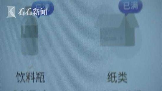 普陀区的康泰公寓小区里,这台“小黄狗”智能垃圾分类回收机已经停摆多日,除了纺织物以外,饮料瓶和纸类都显示“已满”,无法正常投递可回收物。
